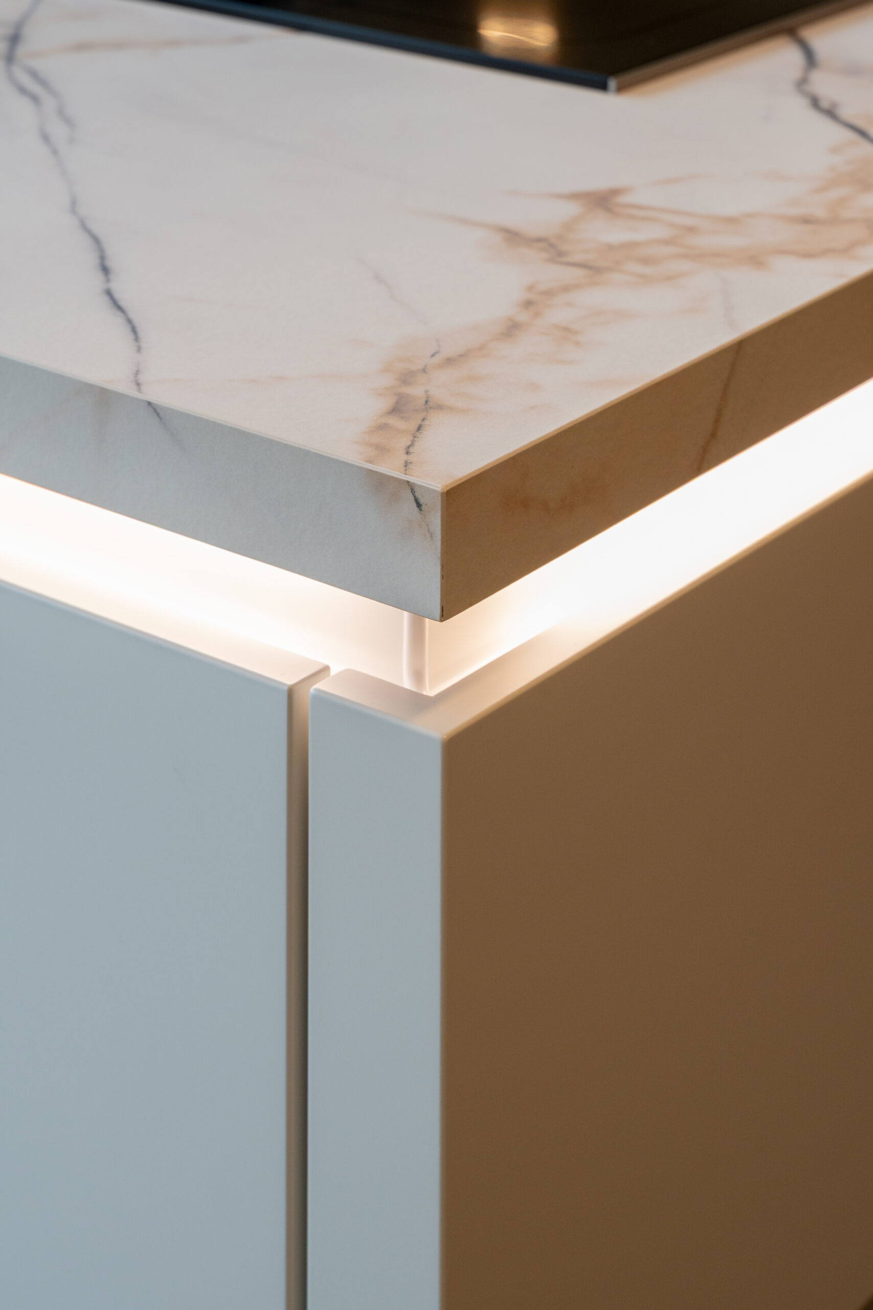 TWA Keukens biedt geïntegreerde verlichting en stijlvolle afwerkingsdetails, zoals greeplijsten en sierpanelen, om jouw keuken een verfijnde en smaakvolle uitstraling te geven. Deze subtiele elementen maken het verschil in sfeer.